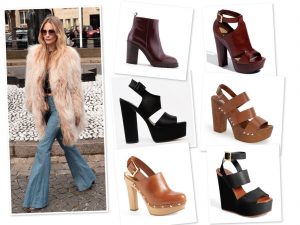 - Plataformas. Sin duda esta siempre ha sido la combinación por excelencia de este tipo de pantalones, son muy perseguidas pues apoyan el concepto de estilizar el cuerpo de manera increíble.